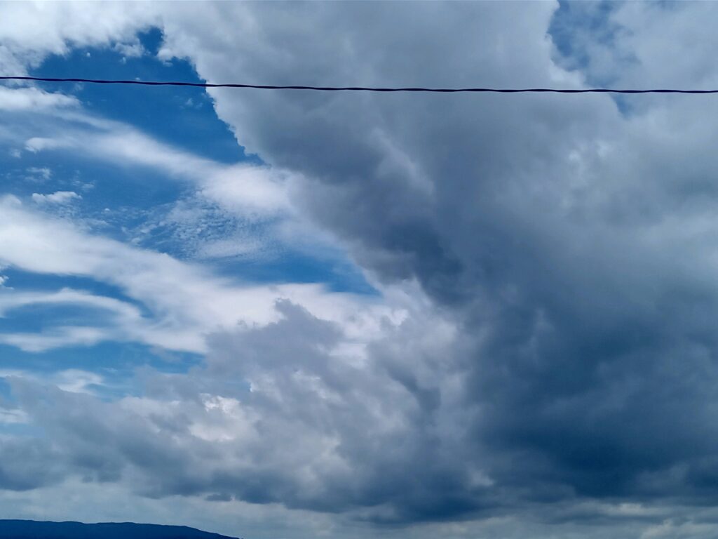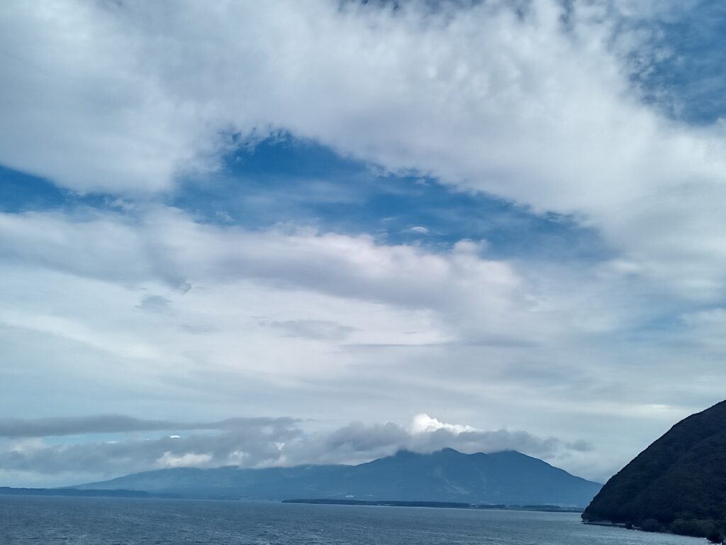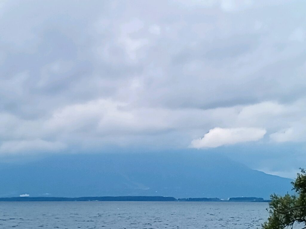 先週の24日(水)を境に、前半は気温も湿度も高く風は殆ど無く、無風状態で湖は凪でとても静かでした。 風が無いせいか暑さを直に感じてしまいました。 後半は気温は30度を超す事は無いのですが、とても湿度が高く、風は強く白波が目立つほど、打ち寄せる波の音は大きく感じられました。 風は有りますが少し動いただけで、汗が滲み蒸し暑さを感じてしまいました。 今日はと云うと早朝は青空が湖面中央に広がり、一週間前と同じく、午後からは灰色の雲が広がる予報が出ています。 但し、湖南町の気温は最高が27度、湿度は低くほど良い風が吹き、ベランダ側と玄関側を開けていると、ちょっと涼しく感じられます。 現在お昼ですが、青空は少なくなり、灰色の雲が全体に広がり、磐梯山の山脈は中腹から上は、大きな雲に覆われてしまいました。 下の写真は左が早朝青空が湖上空に広がり、遠く磐梯山を望んだ風景と、お昼湖中央部に灰色の雲が流れ、湖南方面は青空が見え(電線が・・・)、右端は同じ時刻、灰色の雲に覆われた磐梯山です。