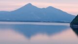 写真は今日ほんの少し前、午後4時半に撮った夕暮れ時の風景です。 今日は風も無く湖は凪状態。