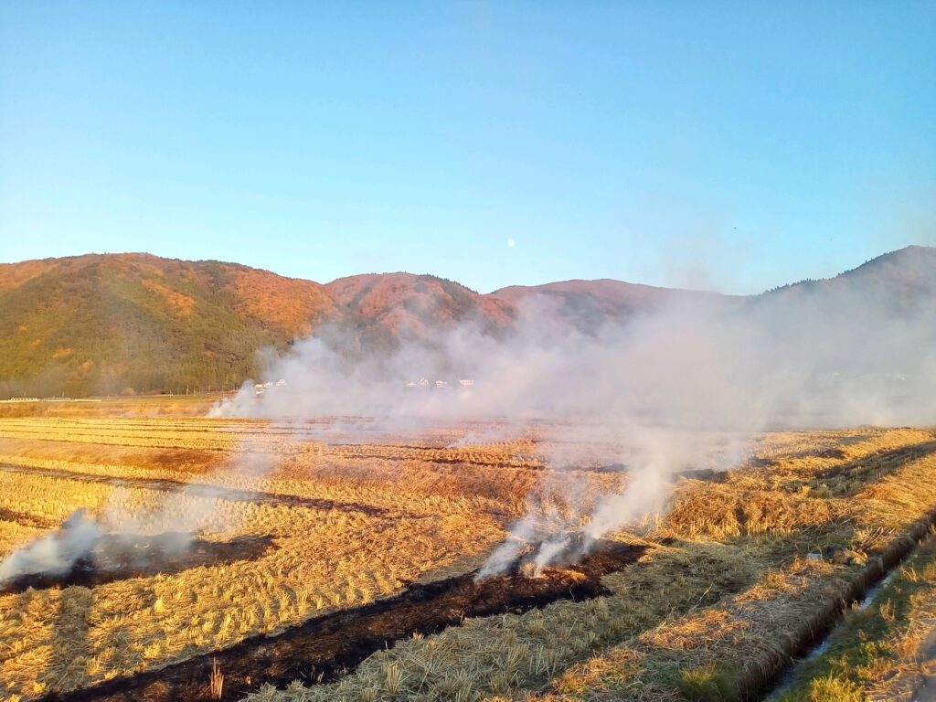 此のところ、周辺情報も日記も、隣町猪苗代町を走る磐越西線等が中心で、我が町湖南町から離れてしまい、久々に私の好きな、そして月一度は訪れている中野の「梅花藻」と、今ならではの風景写真をお届けしたいと思います。 1センチ程の梅に似た白い花を、水中から顔を出す姿は、何度見ても素敵で愛らしい花です。 今年は一月二月に余り雪が降らず、春めいて来た3月に降りましたが、春の雪は解けやすく、土中深くには入らず流れてしまい、地下水源にはなりません。 湧水が流れ、水温14度前後の川の水底で育つ「梅花藻」にとっては死活問題です。 初夏の6月ごろから9月の終わりごろまでが見ごろですが、今年の湖南は台風の影響も然程なく、雨量が少なかったのですが、9月の初めにまとまった雨が降り、十月十一月を迎え、川の水が豊富に流れ、水温が安定した地下水と云う事もあり、白い小さな花達を見る事が出来ています。 そんな中野を後にして、舟津から山間を抜けて館に出て、館から湖岸道路と県道9号線の中間の農道を通り、湖岸道路の横沢浜に出ようと、少年湖畔の村に通じる道に入った時、風向きが変わり、浜路方向に流れていた野焼きの煙の中に入ってしまいました。 狭い農道で車は殆ど通りませんので、煙の中を湖方向を目指して進み、ほどなく通り抜ける事が出来ました。 良く見ると数か所の田圃から、野焼きの炎と立ち上る煙を見る事が出来ました。 この季節ならではの原風景でしょうか。 現在ゴミの野焼きは法律で禁止されていますが、例外として、農業を営むためにやむを得ない場合は認められています。 それでも民家の多い場所等は、市町村によって定められています。 郡山市の中でも過疎化の進んでいる湖南町や、お隣猪苗代町等では例外に入るのでしょうね。 煙は県道を超えて山の方へ、行き交う車に支障が無いのを祈りつつ、帰って来ました。 下の写真3枚はこの時に撮りました。