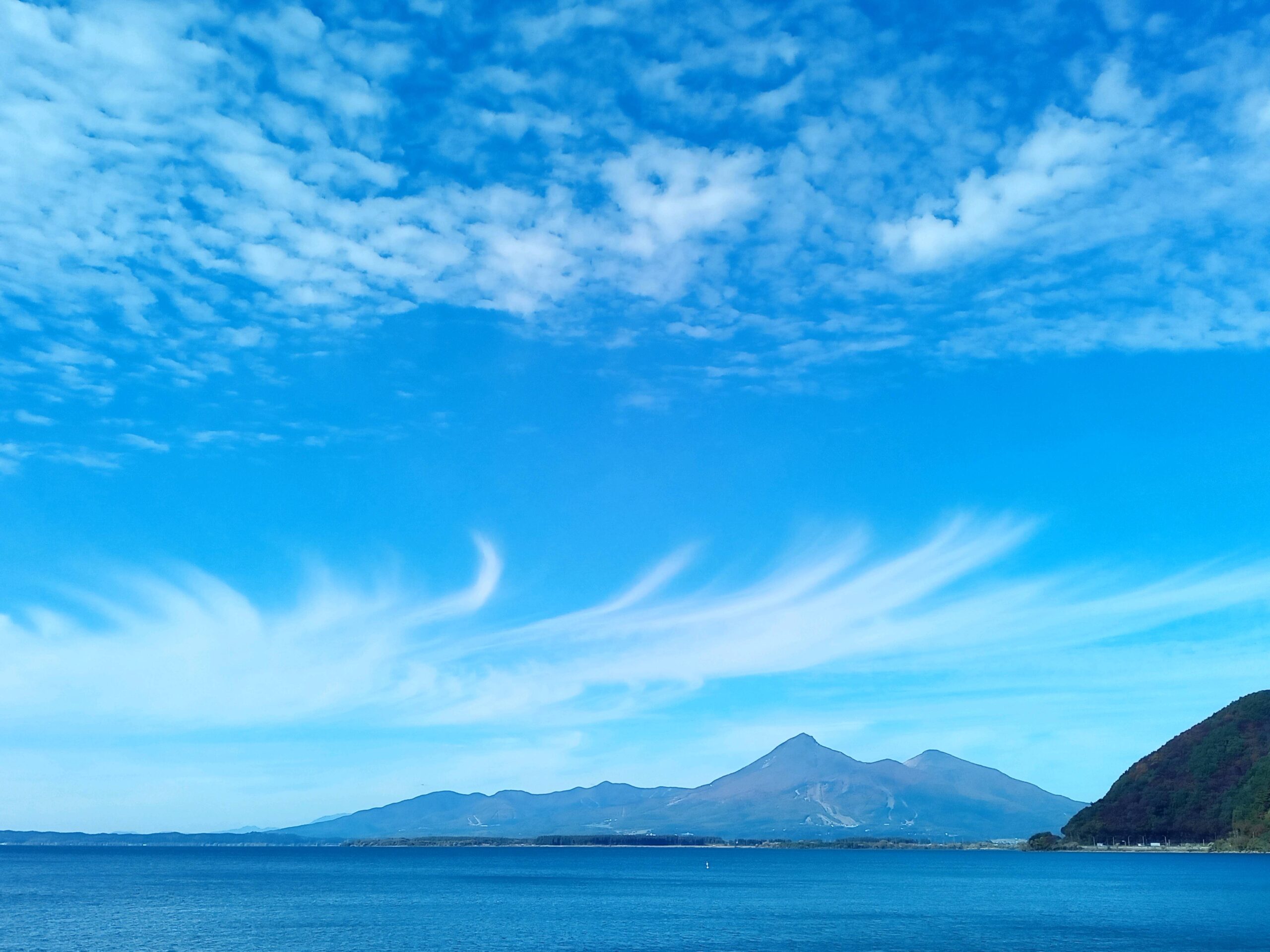 最初の写真は12時15分上戸浜からのもので、この後国道49号線を中山峠方面に進み「風の広場」に行きました。