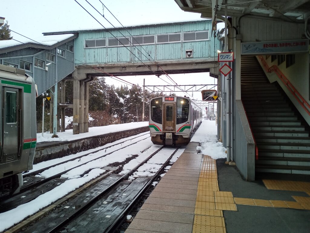 今日の写真は、昨日17日の猪苗代町内の積雪状況と今日18日も含めたマンション周りの雪状況をお伝えします。 どの辺りから側道に積雪があるのか分からないので、安全を来たし自転車は止めて、路線バスと電車で出掛けました。 最初の3枚は猪苗代町で、日曜日15日夜から16日にかけて降った雪が、除雪はされていましたが道幅は狭く、両脇に真新しい雪が積もっている歩道と、何時落ちて来るか分からない木々の枝に積もった雪、猪苗代駅構内の様子で殆どの時間帯、上りと下りが同時刻に此処で行き違います。