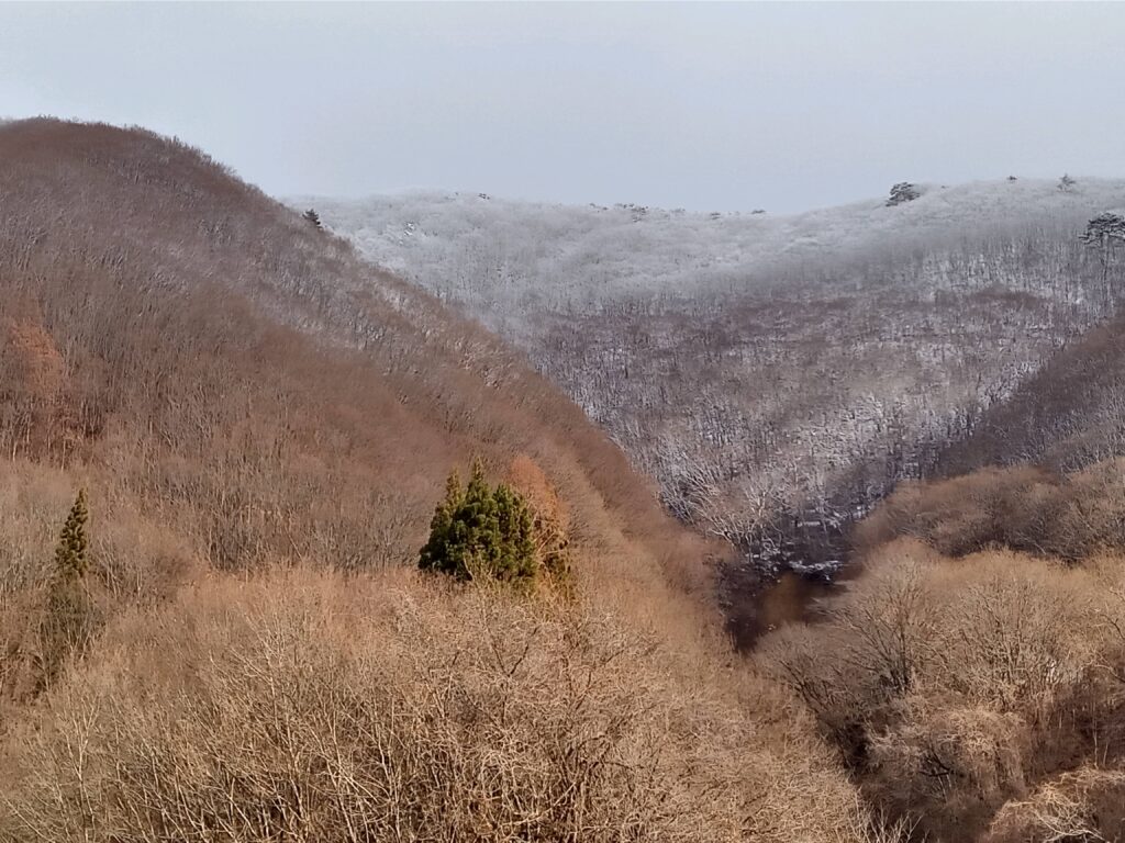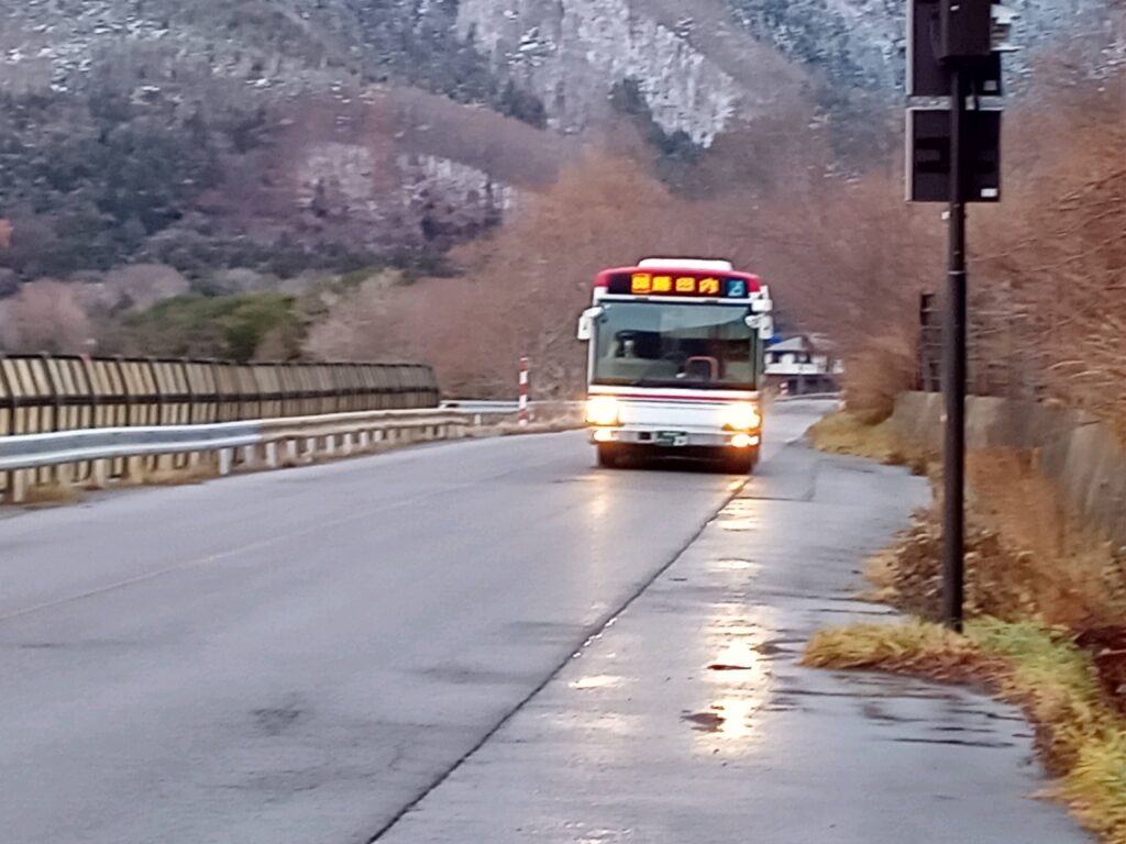 下の3枚は猪苗代駅から郡山駅行きの磐越西線で上戸駅で降りたのですが、路線バスとの乗り継ぎが悪く時間がだいぶあるので、上戸浜のロックシェッドの手前まで歩き、バスを待っている時に撮った温度計と、湖南の中心地福良の先の終点「勝田内」の路線バスと、今日18日のマンション裏の里山の景色です。 後ろに見える山には雪がありますが、国道49号線から県道9号線に入ると、車道は当然側道も道路に沿った木々達にも雪は、今日現在この先の浜路の集落辺りまでありません。 お天気ばかりは冷え込んでも雪が降るとは限りませんが、峠道等は凍っていますので充分気を付けて下さい!