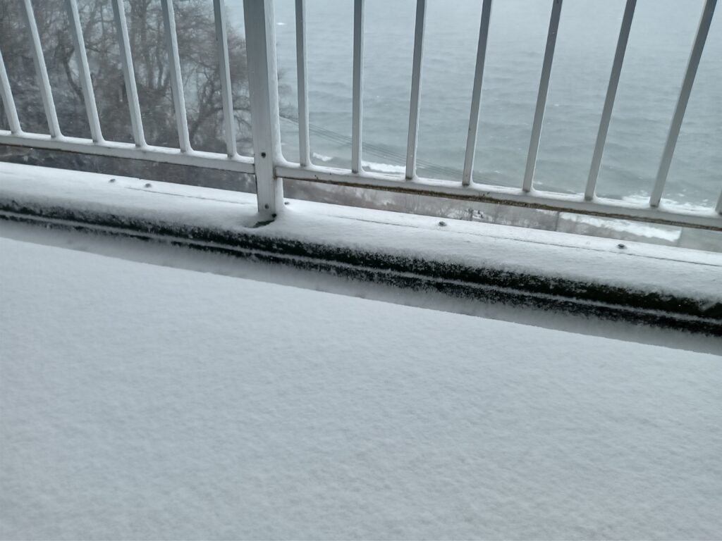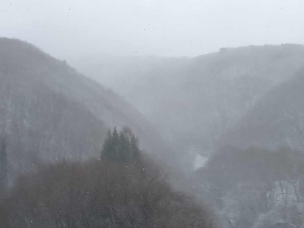 本格的な雪の到来です! 昨日の穏やかな日が嘘の様に、早朝から強い風が小雪を運んで来ています。
