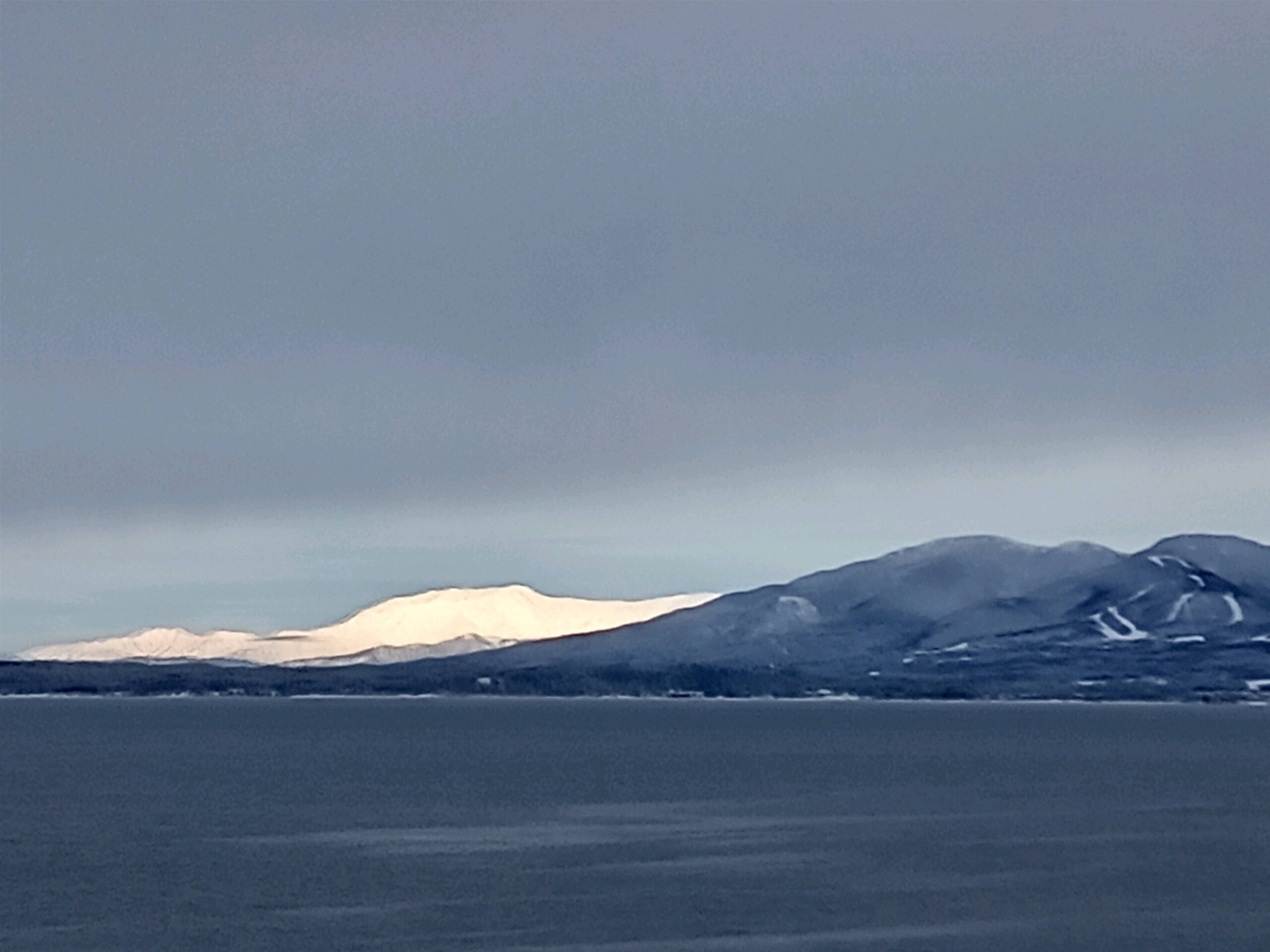 今日のマンション周りの雪と天気情報に、日記の更新のお知らせです。 8日水曜日から続いた雪は、昨日11日土曜日午前中には止み始め、お昼1時ごろから青空が湖の中央部から湖南方面に広がり、3時近くになり猪苗代方面も見えて、磐梯山の裾野とスキー場のコースが分かる様になってきました。 夕方までには山全体の姿を見せる事は有りませんでしたが、陽が落ちて暗くなると、星も輝き光が弱いですが流れる雲間から月も顔を出しました。 今日の朝は日が出る前から対岸が見え、磐梯山も徐々に姿を現し、8時半ごろには磐梯山と遠く飯豊山が真白く輝やく姿を見せてくれました。 風も大変弱く湖面もとても静です。 このまま一日素敵な風景が続くのかと思っていましたが、11時前ごろからあっという間に粉雪が舞い始め、何も見えない真白な世界が広がり、え~また雪!天気予報と違うと思っていると、10分もいや5~6分で青空が見え、この繰り返しで現在はやや薄い雲に覆われています。 天気が急変した最初だけ雪が舞いましたが、その後は降っていませんが・・・。 ここ四日間、お天気のおばさんになったかなぁ~と自分で思う程ですが・・・! 気温は晴れた分冷え込み今季一番のー7度、最高が3度です。 明日の祝日「成人の日」と火曜日の予報は雪マークは消えて、曇り時々晴れになっています。 前を通る県道9号線車道には雪は有りませんが、除雪された雪が両側の側道にあり、普段よりも車幅が狭くなっていますのでご注意下さい! 電車でお越しになる方は少ないかと思いますが、ここを通る路線バスは通常通りですが、磐越西線が午後1時現在運休となっていますので、ご利用される方はくれぐれもご注意下さいね! 上の最初の写真は、朝8時半とても綺麗に見えた真白く輝く「飯豊山」です。 下の左側は14日に満月を迎える今日朝4時過ぎ、湖面に映る月明りがとても綺麗でした。 中央が朝6時半過ぎマンションの真向かい対岸の風景と8時に全体の姿が見えた磐梯山です。
