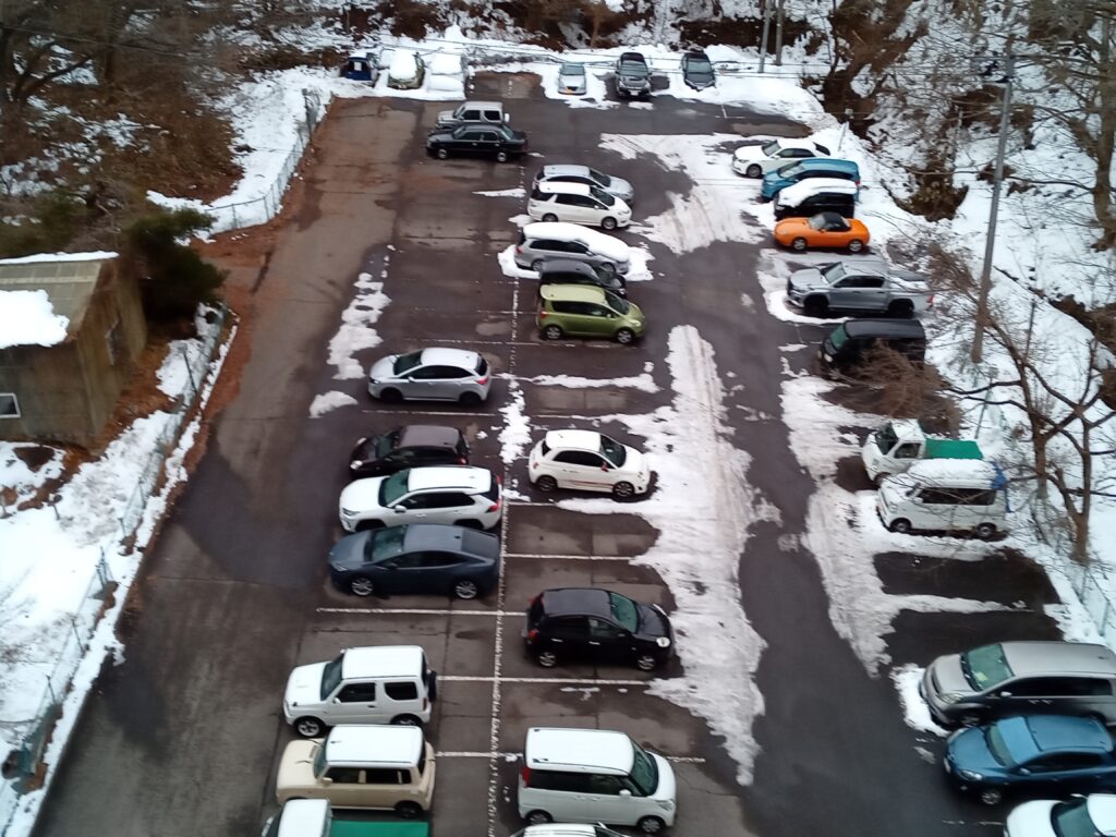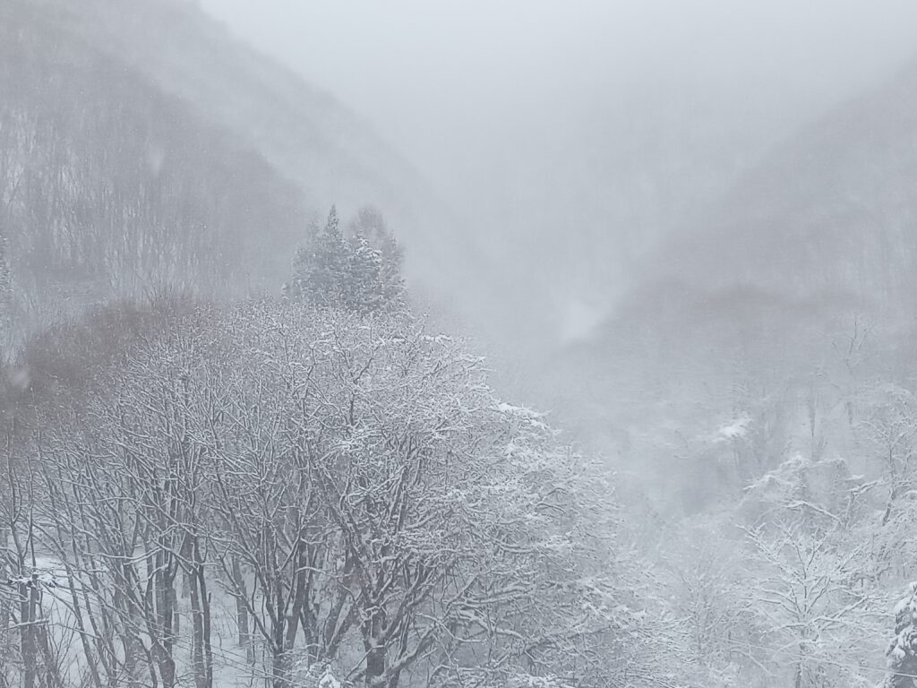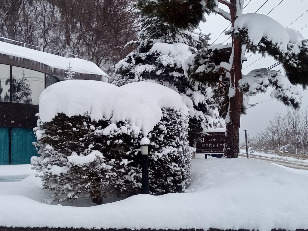 1月11日(土)マンション周辺雪情報を載せ、12日(日)に漸く回復した様子をお届けし、雪の解け具合を25日の日記の写真でお知らせしました。 昨日の午前中には青空も広がりましたが、お昼を回ると低い雲に覆われ風も強くなり、2時を過ぎたころから雪が降り出し周りの景色が全く見えなくなりました。 夜通し降り続きベランダには又新しく15㎝程、吹き溜まりにはその倍近く溜まっています。 午後2時頃まで見えていた車道のコンクリートが、除雪車が頻繁に通りますが、午後4時頃からは雪の白い車道に変わってしまいました。 風も一段と強い音を響かせています。 参考までに磐越自動車道は、会津若松ICから郡山市磐梯熱海ICの上下線で通行止めが続いています。 磐越西線は終日、磐梯熱海駅から会津若松駅間の運転を見合わせています。 代行輸送はしていません。 以上が交通情報です。 上の最初の写真は今日午前9時半の裏の駐車場の様子ですが、現在は車の上に更に20㎝程の雪があります。 下の左側は昨日29日の同じ時刻午前9時半の様子と、中央が今日のお昼時雪が舞い裏の山々が霞んでしまいました。 右側はハートの姿が一度消えかけた正面玄関の植木と、側の木の枝が水分を多く含んだ雪のせいで今にも折れそうな様子です。 予報では今日いっぱい雪が続く様です。 お越しの際は充分な雪への準備と、安全運転で無理をしないでゆっくりとお越し下さい。
