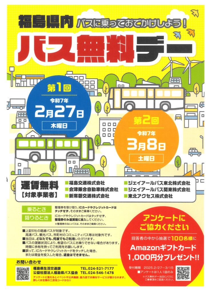 前回07日の日記の最後に余談で、08日土曜日に福島県内の路線バスが無料になりますと、お知らせ致しました。 以前から県内のニュース等でご存知で、車を置いて出掛けられた方もいらしゃるかも知れませんが、今日の内容は、「無料」の文字に誘われてと云うか?負けて、早朝から出掛けた時の話です。