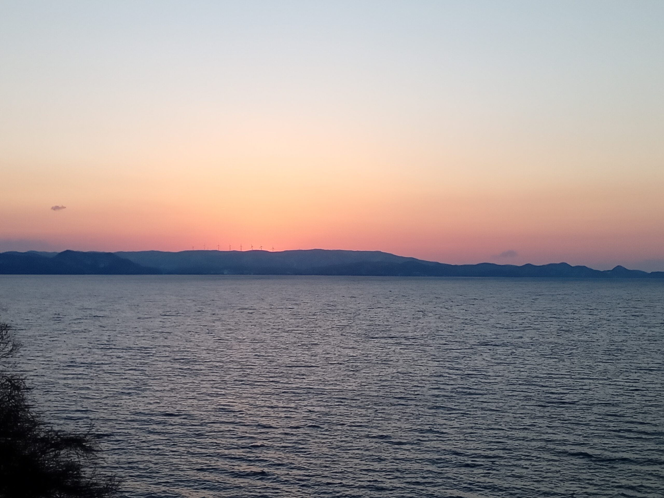 日記を更新しました。 前回19日の日記の花の続報です。 今回もお知らせの「新芽情報」に仕様か悩みながら・・・前回に合わせ日記にしました。 今日・明日と晴れマークで気温も15度を超える予報が出ています。 週の中からは曇りが続きますが、気温はもう少し上がる予報となっています。 山間部では雪崩の注意報が出ていますので、スキー場等にお出掛けの際は充分に気を付けて下さい! また花粉症の方は辛い日々が続くかと思いますが、綺麗な風景と澄んだ水・空気で癒して下さいね! 上の写真は昨日の夕焼けです。 日中は風が強く吹き、景色は霞んでいましたが、午後5時47分ごろ黄昏色に染まり出していた空が、日が沈み増々色が鮮やかになった49分ごろです。