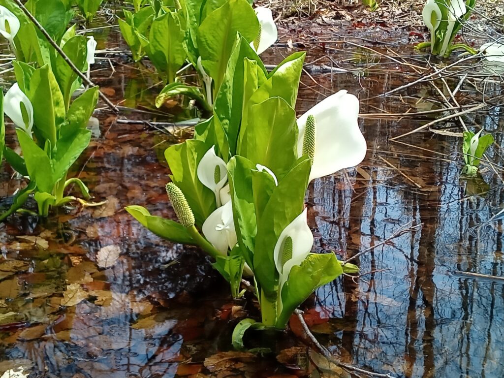 下の写真3枚は、今湖南町で盛りと咲いている此れまでに紹介した二つの花と、今回初めて紹介する花の写真です。 左側はお知らせでも写真を載せた「馬入新田の水芭蕉」。 今がとても綺麗です。 白い「苞」が終わると葉は成長し、驚くほどお化けの様に大きくなります。 真ん中は3月24日に一輪だけ咲き写真を載せた舟津の「紅梅」で、約四週間かかって満開を向かえました。 右側は今回初めての「ショウジョウバカマ」です。 湿った谷沿いの斜面や森林で見る事が出来ます。 名前の由来は葉の重なりが、少女が袴をはいている姿を連想させることから付いた様です。 花は線香花火を散らした様な姿で、色はピンク以外にも沢山ありますが、此処ではこの一色でした。 場所は湖南港手前、日本一山ハイキングコースに入って直ぐの所に咲いています。 一番上の写真は前回15日の日記に載せた同じ場所で、廊下側から撮った裏山の風景です。 だいぶ緑が鮮やかになりました。 周辺の山桜が赤みを帯びて来ましたので、この週末には林を彩ってくれるとおもいます! 楽しみにお越しください!