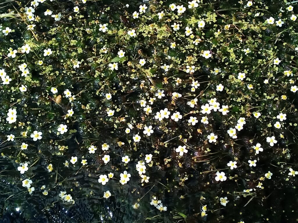 二つの出来事がありました。 一つ目は6月の中旬から咲き出す、中野地区清水川の水中花「梅花藻」が、8月に訪れた時には水は清らかに沢山の花が咲いていましたが、それから約一か月後、長い時間パソコンに向かい疲れた目を休めようと花を見に出掛けた9月下旬、何と何と清水川が涸れてしまっていたのです! え~え~湧水が涸れた! 余りの変貌に驚きびっくりです。 今年の2月湖南では何十年振りと云う大雪に見舞われ大変な思いをしました。 但し6月からの梅雨時には雨がいつもの年より大変雨量が少なかったのです。 降り過ぎにも困りますが梅雨時の雨はやはり大事なのですね! 当然、水が一滴もないのですから、花の形も葉のかけらもありませんでした。 流れは戻って来ただろうかと約一ヵ月後の10月下旬に見に行きましたが、流れは無く岸は雑草が伸び放題。