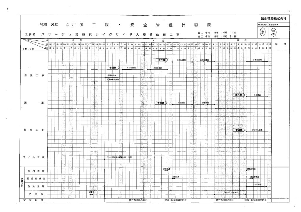 ②大規模修繕工事 今後の足場設置工事予定になります。下記予定をご確認ください。