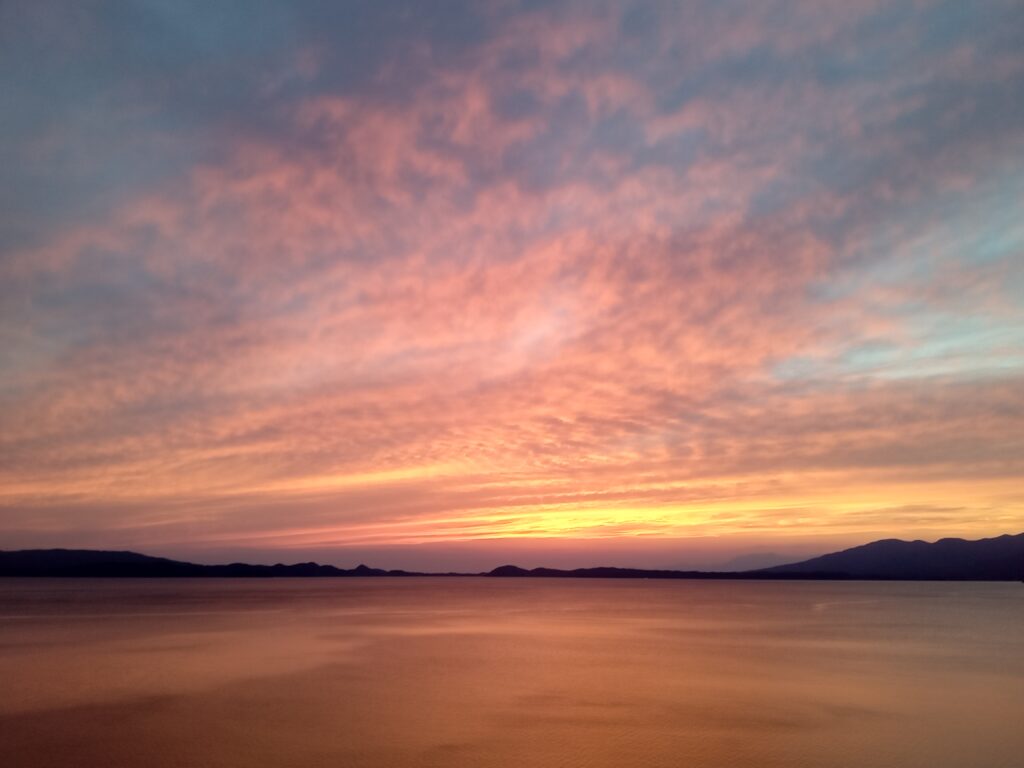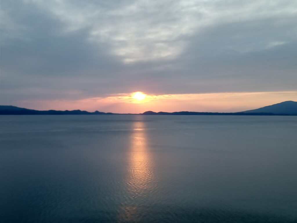 一部が明るくなり、大きな夕日が姿を現し沈み、夕焼け空が言葉では表現出来ない風景を創り上げた。