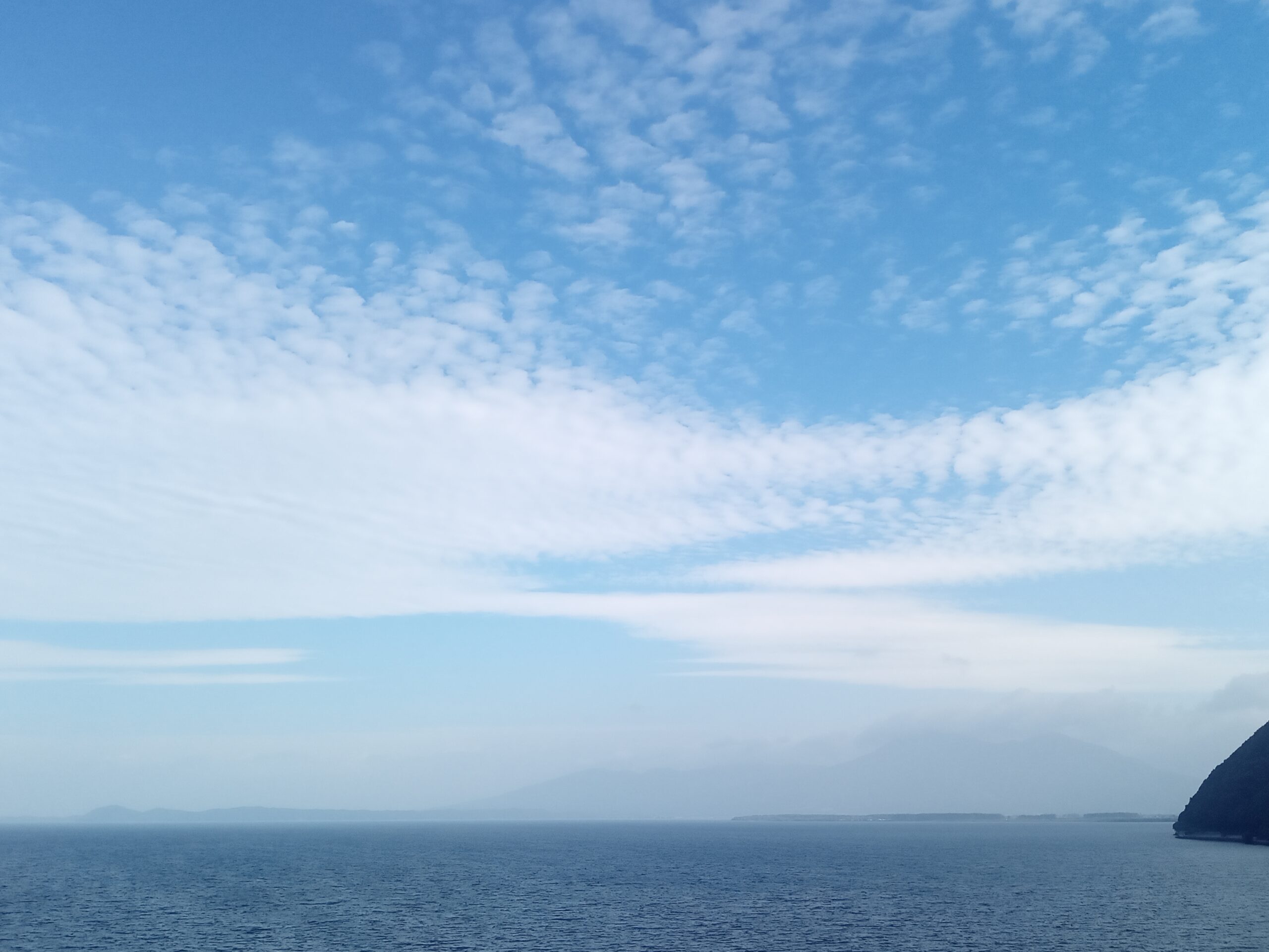 気温は21度と少し肌寒さを感じるほどです。 雲の流れが速く、午前中湖の上には青空が見える事も