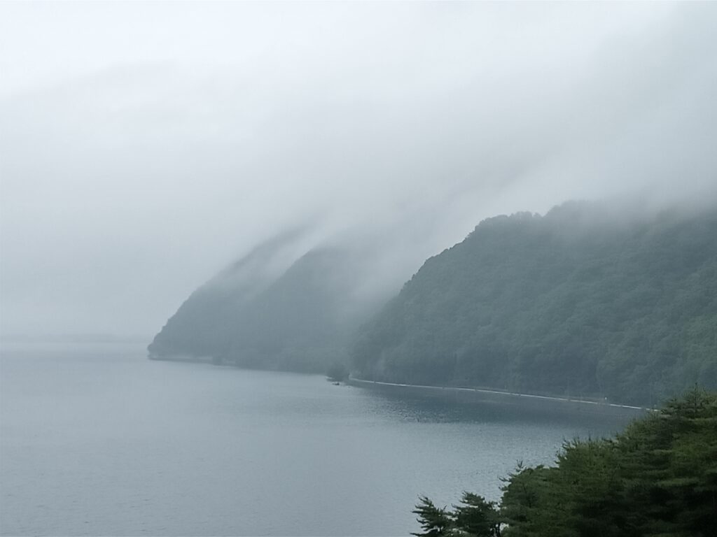 汗ばんでしまった。 夕方になり、薄ら見えていた山脈が霞んできて、白い世界が広がったが、雨脚は