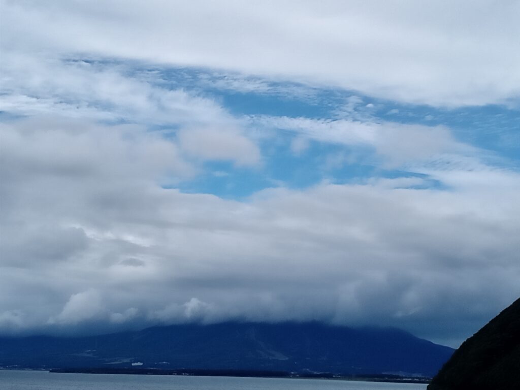 強く降ることも無かったせいか、車道の乾きは早く、お昼を過ぎると厚い雲間から青空が時々顔を出す様になり、磐梯山や湖南の上空に広がって来た。 ここ二日間蒸し暑かったが、今日は風も強くベランダに出ると気温は23度有りますが、半袖だと少し肌寒さを感じました。