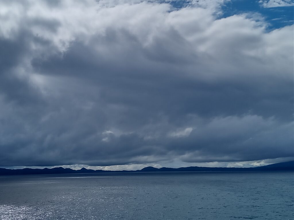 白波が立ち始めたが、10時を過ぎると南の空が明るくなり雨が上がった。