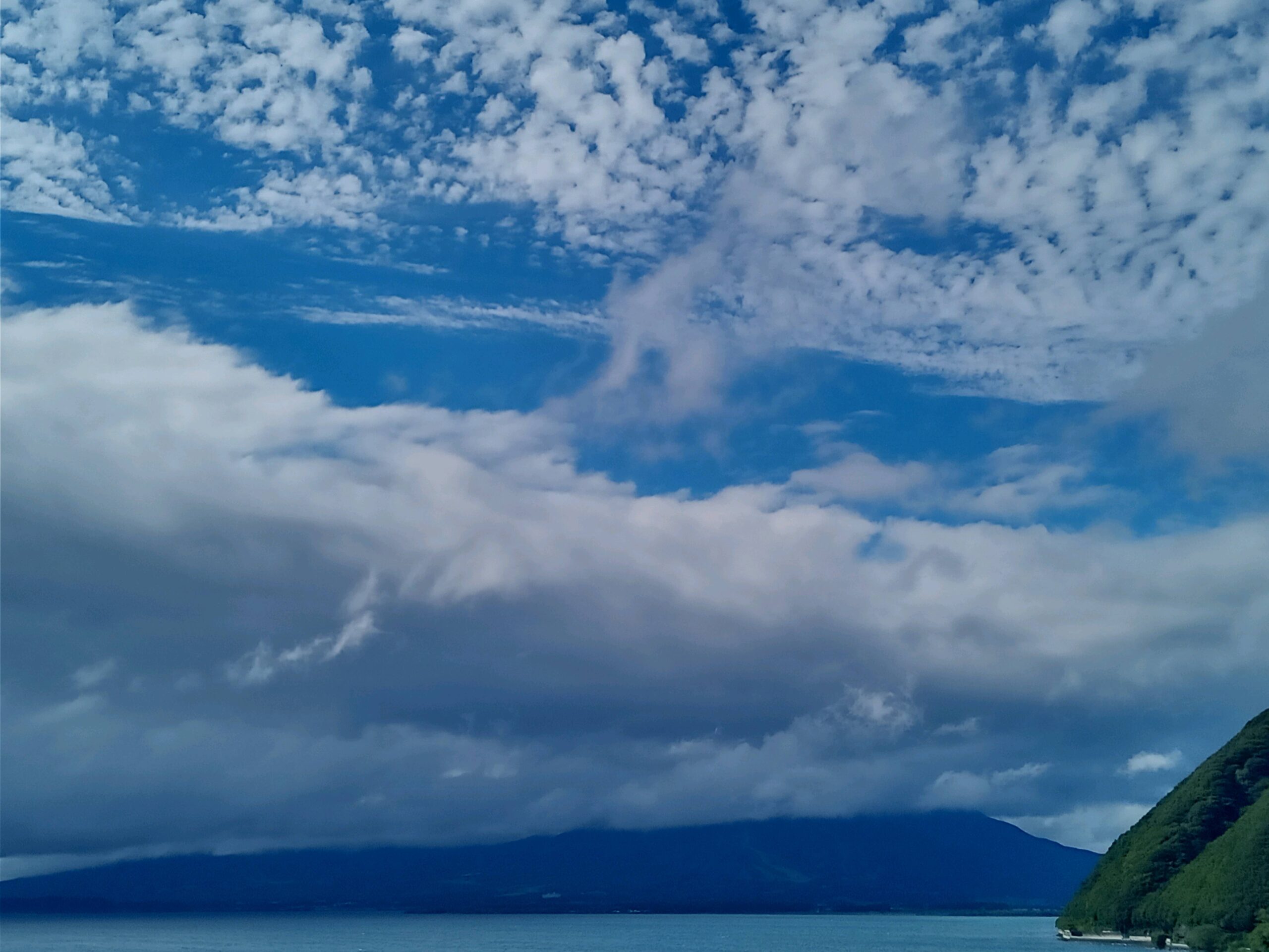 強く降ることも無かったせいか、車道の乾きは早く、お昼を過ぎると厚い雲間から青空が時々顔を出す様になり、磐梯山や湖南の上空に広がって来た。 ここ二日間蒸し暑かったが、今日は風も強くベランダに出ると気温は23度有りますが、半袖だと少し肌寒さを感じました。