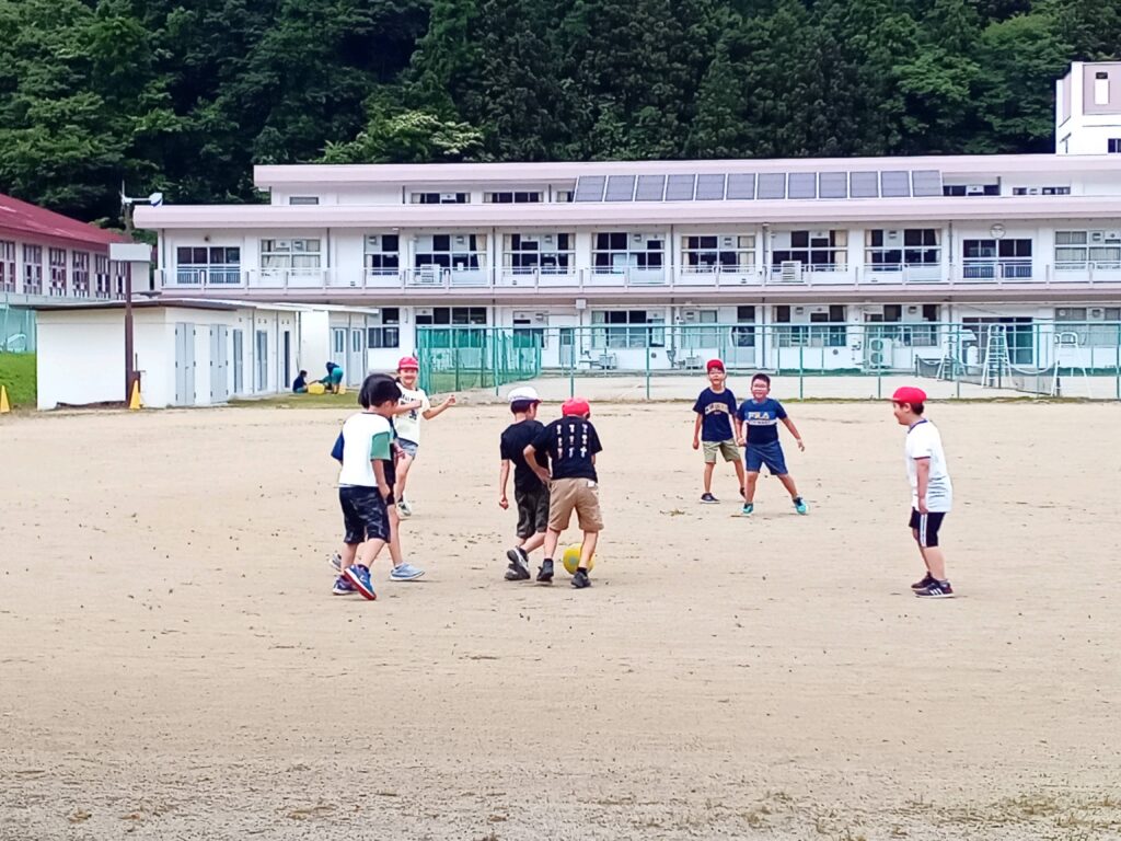 午後一時から25分まで昼休みに入り、思い思いに過ごしている様子で、サッカーをする子、虫等を探している子、ブランコに乗る子等、私にとっては此処湖南で初めて沢山の子供たちが遊ぶ姿を目にしました。 1975年郡山市湖南町の4つの中学校が統合して設立され、2005年に5つの小学校が統合した