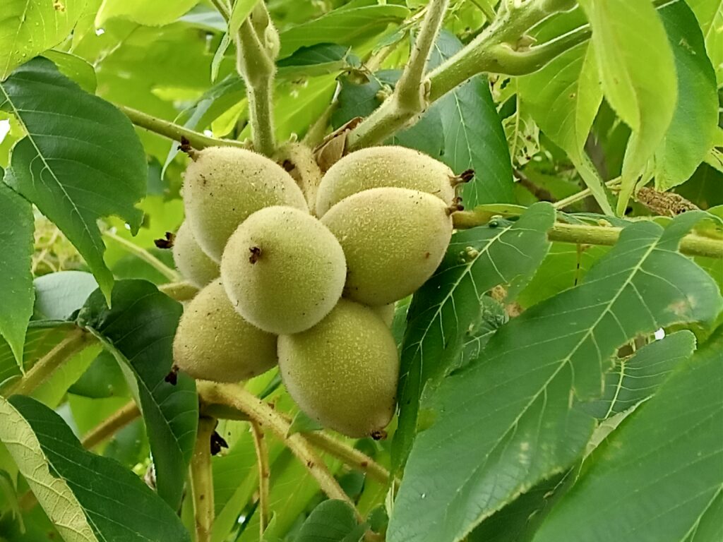 6月22日土曜日の日記に、マンション周りの花や実の写真を載せましたが、2回目の今日は小さな実の写真を上げます。  ブラシの様な花を咲かせていた栗の木で、同じ枝での撮影です。  小さな可愛い毬栗が付いていました。  次は栗の木の近くで、花の写真はありませんが、クルミです。 緑の皮付きのまま落下している物を見かける事が有りますが、「オニグルミ」です。  市販のクルミは「テウチグルミ」で花床の部分がひとりでに裂果して、簡単に割る事が出来ます。 赤い実は「クマイチゴ」でテニスコート上の一軒家の近くと、舟津方面に曲がって最初の直線コースの左土手に沢山有りますが、そろそろ終りの様です。  栗やクルミが大きくなった秋が楽しみです。