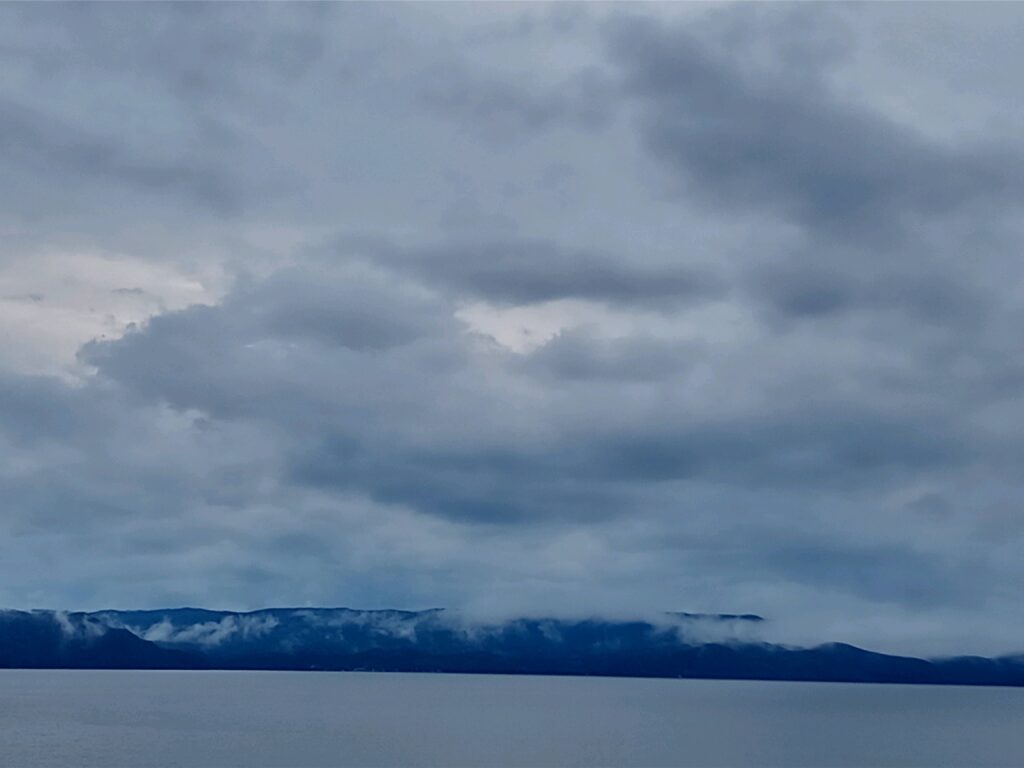 午後二時と右は又降り始め雲に覆われた午後七時前の風景です。