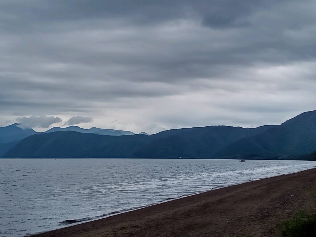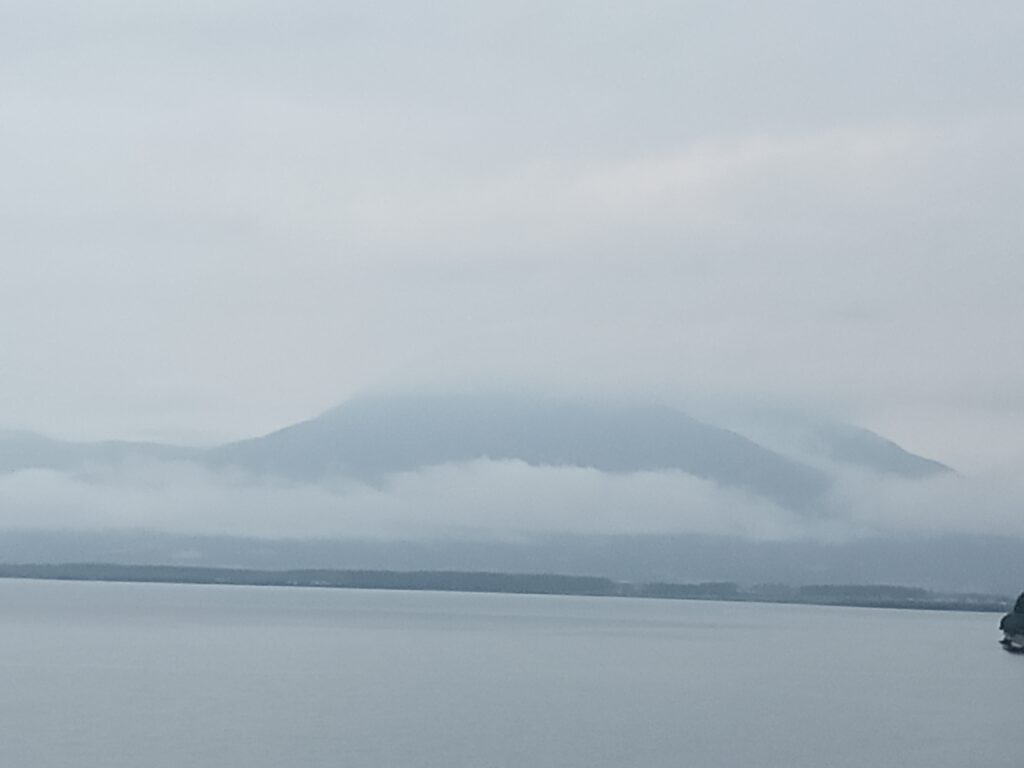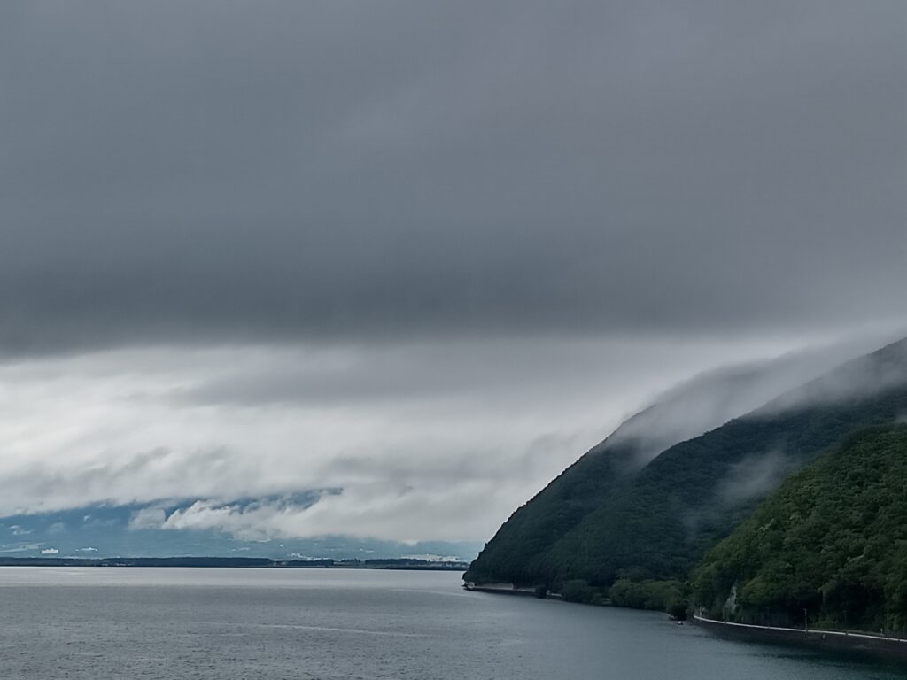 ここ三日間、月火水と同じ様な天気と気温が続いています。 早朝は磐梯山が見え、10時を過ぎると弱い雨が降り出し、上がっては降りを繰り返し、午後2時ごろ風と雨脚が強く、高い白波が押し寄せ、午前中は湿度も高いですが、強い風が吹いた事で、雲が流れ比較的過ごし易い25度前後の気温となり、午後7時を回るころには21~22度と落ちつきます。 今日は早目の午前11時半ごろに、青空が覗いたのでマンション周りの花を撮り、昼食後、午後1時に福良を目指して出発しました。 空が明るくなりつつも、万一を考え雨に遭う事を考慮して、雨具も用意して出掛けました。 県道や湖岸道路の側道には、夏の花「ヤブカンゾウ」と「ヤマユリ」の蕾を見る事が出来ました。 風も穏やかで順調に進んでいましたが、舟津川を渡り湖南港を過ぎた辺りから小雨が降り出し風が出て来て、あっという間に雨脚が強くなりました。 木々たちが生い茂り、コンクリート車道の乾いた場所を探して、雨宿りをしましたが風は強く吹き荒れ、視界が悪く水たまりが出来、雨具を着ていましたが役にたたない程、靴同様にびしょびしょに濡れてしまいました。 約20数分木の下にいたでしょうか? 午後2時を回ると少し雨風が弱くなり、湖南港近くの建物の軒下に入り、10分位過ごし、止み出したので舟津信号の近く、時々立ち寄る「小町」店で冷えた体を休ませて帰って来ました。 上の写真は雨が少し強くなった午前8時ごろと、舘浜から浜路方面を撮った午後1時半、右が雨が上がり磐梯山が姿を見せ始めた午後5過ぎですが、このまま止むのかと思っていたのですが・・・現在午後9時も小雨が降っています。 下の写真はテニスコート道路を挟んだクルミの木下の「ナワシロイチゴ」で地面をはい回り日当たりの良い道端で最も見かける木イチゴです。